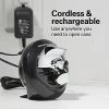 I have opened cans with many implements over the years, many of which had no business being near a can. Not any longer. I needed a can opener that appropriately reflected my love of classical music and impressionist art, and luckily Oxo specializes in just those sort of kitchen devices.Anyway the opener itself. It is covered in smooth and rubbery black plastic, enhacing grip. Its principle of operation is different than any other opener I have ever used, to the point of confusing me for a good ten minutes. It cuts AROUND THE SIDE of the can, NOT THE TOP. Looking for the telltale mark along the glazing left me puzzled, and on the brink of returning the device. However that’s what the little jaws are for! Grab the top lip of the can after you’ve gone around the whole thing and PULL. The entire top will come off like a cap, which is very satisfying. You can even put it back on as a lid, but there are several reasons I wouldn’t recommend doing so.1. The edge IS sharp, and can cut you if you aren’t careful.2. If you put the top back on, it’s visually indistinguishable from an unopened can! However it needs to be refrigerated and consumed within a few days or it WILL go bad.Anyway, once you “get” it, it’s the best can opener, IN THE WORLD!Perfect for when you (or your help) needs to open a can to feed the masses (or pets).