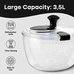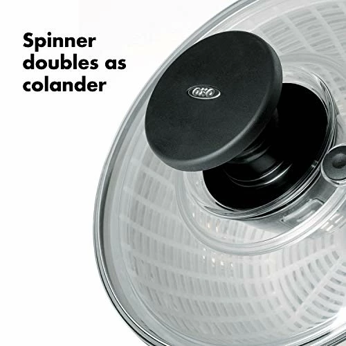 Excellent easy most sturdy & fastest to use salad spinner that I have ever owned. Yes it’s pricey, but it was well worth the money after I used this thing. You just stuff the green leaf lettuces, greens or fresh herbs inside the plastic bpa free strainer bowl & then place the plastic bpa strainer bowl inside of the stainless steel strainer bowl. What I like about this Salad Spinner is that it is built well, solid & it has the safe silicone grip on the bottom of it to make it grip the counter, so while it’s spinning it does not slide on the counter, but it does rock. It is so easy to press button to unlock & to pop the button up to press it to spin the salad goodies. It does not have one of those middle things in the middle of this salad spinner like all other annoying salad spinner, so you have all of the entire space inside of the bowl for spinning your green leaf healthy goodness. It’s silent while spinning veggies, it does rock a little from side to side a little when you hit the button a bunch of times, but well expected in my eyes. Everything that I have purchase from this company OXO has been excellent quality & I also own other products from them & they are also well made & work excellent just like this excellent salad spinner that I will purchase again when it comes to the end of it’s life which I reckon will be in a long time from now considering the well built construction of this awesome looking & working salad spinner. It is an extreme delight to use unlike all of the other salad spinners that I have owned before this excellent product. It is easy to wash & nothing sticks to the surfaces either the plastic basket or the stainless steel bowl. I only wash the this salad spinner by hand & have never put it into my dishwasher & will never put it into my dishwasher because I want it to last & I wash all of my stainless steel products by hand. I also use the stainless steel bowl for organic gluten free air popcorn & for huge salads because it has so much space inside this wonderful bowl & plus it is so easy to wash out & dry out because the surface is just so nice & nothing stick’s to it at all. So you should go & purchase this Salad spinner because believe me you will be happy that you finally paid more for a salad spinner because I surely was after I got it & used it.
