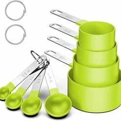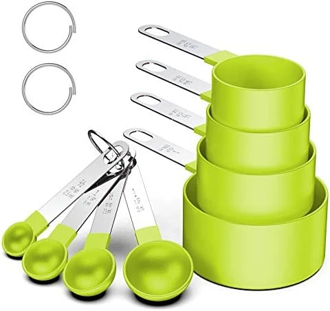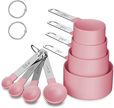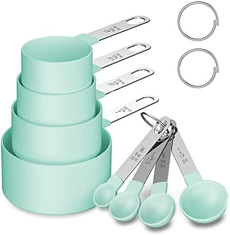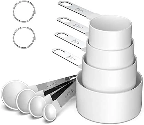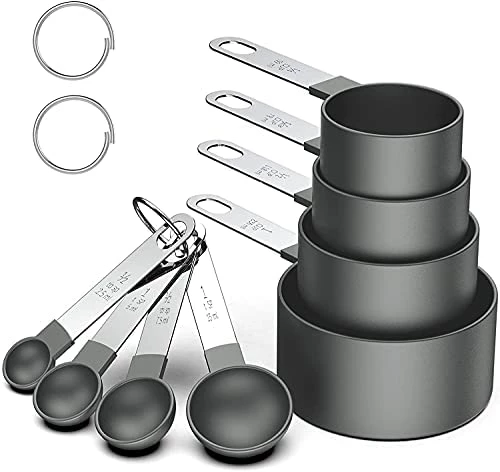 - γEasy to Carry & StoreγLightweight measuring cups and spoons set can be nested into each other and fixed together with easy to open and close stainless steel rings to ensure hassle-free organization and storage