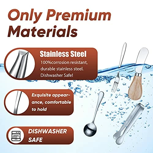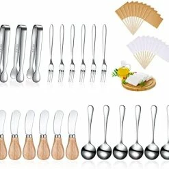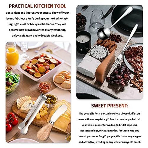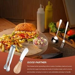- Sufficient quantity: the package contains 4 pieces cheese butter spreader knives with wooden handles, 2 pieces mini serving tongs, 4 small spoons and 4 small forks for serving, applied in butter, cheese, butter, jelly, jam, butter and pastry making; It is enough to satisfy your daily use and can be given to relatives and friends as gifts, which can bring much convenience