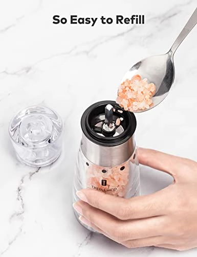 - ?Truly Easy To Clean & RefillοΌJust open the top round lid and rinse it under the faucet to be as clean as new. One Step Refill–Simply pull up on the top round lid section to reach the chamber and pour in your freshly new peppercorns or coarse sea salt. Maintain the freshness, keep moisture and dust away.