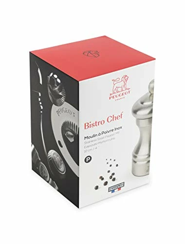 The Legendary Mills by Peugeot. Made in France since 1840. Best results guaranteed by Peugeot’s unique spice specific mechanisms. Two-stage technology, first cracks then grinds, releasing all the aromas. High-output, always consistent grind, fully and easily adjustable. Lifetime warranty on unbreakable mechanism. Best in class, Peugeot mills will still be performing when others have been replaced. The historic Bistro mill, a model invented in 1874, is Peugeot’s tribute to those who really appreciate their food. Bistro pepper or salt mills from the Chef collection can now also shine on any table in elegant stainless steel. Designed with flair and highly functional, the Bistro Chef is made in France and its mechanism is guaranteed for life. The perfect gift for anyone.