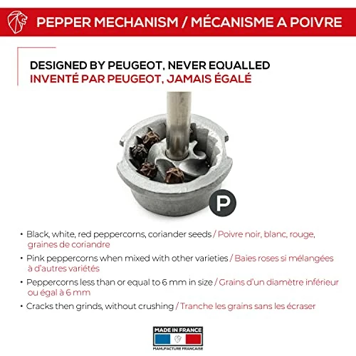 - Made in France. Peugeot Mills are partially filled with pepper at the factory in France as part of final assembly and testing. Ready to use