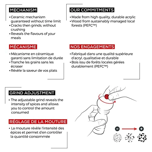 Salt grinder does not grind. My husband says it appears to be missing a piece inside. Sad quality control on a not-inexpensive grinder. Cannot recommend this product.