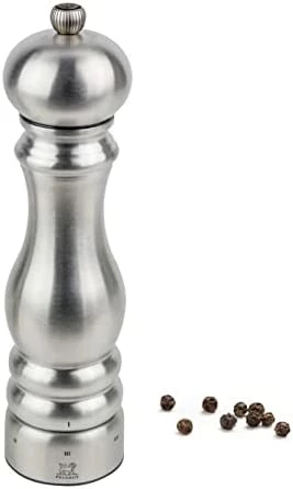 Classic French product, high quality workmanship. I think they have been making these since the 19th century. I like to dial in the different grain sizes, with infinite modulation rather than ratcheted to specific steps in grain size. Easy to hold in the hand, I love the machined stainless steel. Extremely durable and grinds out the product reliably, uniformly and smoothly. Shape and fit in the hand means less fatigue when grinding out a lot, at least in my experience. Somewhat susceptible to humid conditions (less/slower product when humid) but I gather that is the case with any pepper mill.