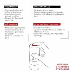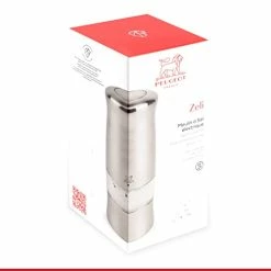 - COMPACT MILLS β With a single touch, the Zeli electric mills light up to deliver freshly ground salt. Bring a contemporary touch to your kitchen. Simply press the button for a quick and precise one-handed operation. Developed in France by Peugeot