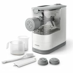 I’ve owned a Marcato Atlas 150 pasta maker for quite some time, and so I’m familiar with making my own delicious noodles and pasta. I decided to give the Philips Compact Pasta Maker a try (versus it’s big brother) because we’re empty nesters and 2-4 servings would usually suffice for us.My first batch didn’t turn out well at all. Instead of interpreting the instructions for liquid correctly, I added 80 mL of water plus an egg. What I got was a mixture that was far too moist and couldn’t even extrude! It took quite a while to clean up the the pasta maker and remove the dough from the paddle and extruder. Not to be daunted, and recognizing my mistake, I tried again.My second batch was perfect. I used the basic recipe of 200 grams of flour to 80 mL (total) of liquid and the pasta started to extrude after about 3-4 minutes. It is a bit drier than what you’d expect if you’ve ever made pasta with a manual machine, but has the advantage of not sticking together when you trim it and place it on a plate or bowl. In addition, the dough doesn’t need to “rest” for 30 minutes before processing, a definite time saver.The cooked pasta was delicious. I boil my pasta with a healthy dose of salt in the water, and it had a freshly made taste that went perfectly with a homemade tomato sauce and meatballs. Cooking time to al dente was approximately 5 minutes.I think cleanup of the machine parts is a bit more work than using a manual pasta maker. With my Marcato Atlas 150, I never have to do anything but quickly wipe it with a damp cloth and put it away for the next time. The Philips has several parts that need to be cleaned, and the shaping disk really has to be cleaned by hand with the attachments to the scrapper blade. I haven’t tried using my dishwasher for cleanup, but the parts are supposed to be dishwasher-safe.Like most kitchen appliances, I suspect I’ll get better at using the Philips Compact Pasta Maker as I use it more. It reminds me a bit of the first time, years ago, when I purchased a Robot Coupe food processor. The first few times it seemed like more work than it was worth, but now the Robot Coupe has earned a coveted place on my limited kitchen counter and helps me prepare meals every day.Here are some tips from one new user to another.1. Weigh out the flour with a kitchen scale. I have an electronic kitchen scale from AmazonΒ Inateck Digital Multifunction Kitchen and Food Scale, Stainless Steel, Accuracy 0.1 g (Measurement Range 0.5 g to 3 kg), 2 x AAA needed(not included) Β that measures grams or ounces. The plastic cup that is supplied by Philips is of limited use. 200 grams of flour mounds over the top and a level amount using this container is not an accurate measure. It makes more of a mess than is necessary.2. The other plastic measure supplied with the machine is used for liquid. I have great eyesight and the markings are very difficult to interpret. Unlike a Pyrex or Anchor measuring cup where the markings are painted red on clear glass, the markings on the cup are simply molded into the container and are very difficult to read. Use a real measuring cup to measure out the quantity of liquid you’re using and you’ll have an easier time.3. If you’ve ever made pasta dough manually, don’t be fooled by the dough’s consistency in the machine. The recommended basic recipe is the right ratio of flour to liquid. Making the dough too moist will result in a mess in the machine and a lot of cleanup. You’re better off erring on the side of less liquid than more.I’ll report back as I gain experience at using it. It would be nice if a pappardelle and lasagne shaper were available, but I understand that this is a new model for Philips and that those parts will be available in the future.UPDATE October 19, 2017: Tried making fettuccine with Red’s Semolina flour. I weighed out 200 grams and added the egg and water (80 mls) and the result was excellent. It’s not exactly the type of fettuccine I would make manually as it’s definitely a bit thicker, but very tasty and disappeared from everyone’s plate very quickly!UPDATE Friday, November 24, 2017: I have discovered that there are no other pasta disks for this machine as there are for the Philips HR2357. Disks made for HR2357 will NOT fit the compact pasta maker. I don’t know why they’re offered as add-ons on the same page, but believe me, they won’t fit. Hopefully Philips will consider making this machine even better by adding a sheet and pappardelle disk.UPDATE Monday, January 13, 2020: Philips has released a few more dough shapers for angel hair, ravioli and lasagna. I bought them but have yet to try them. Also, I found that by following the recipe included with the machine when using semolina results in a better pasta. I was using all semolina. Philips suggests 150 grams of semolina and 50 grams of all purpose flour. After trying both, I agree.One last note. The pasta made with this machine is thicker and a bit doughier than commercial pasta or pasta that you can make with a standard pasta machine, like an Atlas. The difference is that you can control thickness in a manual pasta maker. With the Philips, you can only use the extruding faces, so there’s no controlling the thickness of penne.