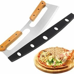 - [UNIQUE DOUBLE HANDLES DESIGN] – The pizza knife adopt the ergonomic double wood handle helps you cut pizza quickly and comfortably without causing any discomfort to your wrist, the unique double handles make it comfortable in hand and save strength.
