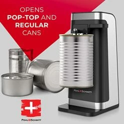 - Top Quality & Function β At Pohl & Schmitt we pride ourselves on making only the best quality products, designed to function properly and also last! With a heavy-duty motor, stable footprint which stays put during operation and a strong easy push down lever handle, this can opener will handle everything with ease for years to come.