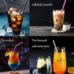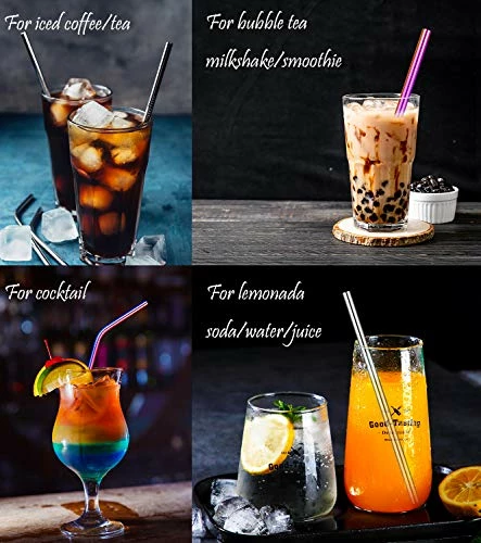 - EXQUISITE CRAFSMANSHIP-SMOOTH EDGES:Well-polished surface with 0.5mm wall thickness, Scratch proof, Smooth rounded edges safe for your lips and hands. will not cut your lips or gums by accident. Perfectly enjoy your coffee, juice, cocktail, iced tea, milk, soda, lemonade smoothies and any other beverage with our eco-friendly sustainable metal straws. Cool looking colored straws add fun to drinking. Light to carry and carry them everywhere and become crazy rainbow straw fashionistas.