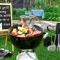 - High Quality Construction: This grill accessories kit is made of high quality stainless steel, strong enough to handle all your grilling needs. You’ll be amazed how sturdy each bbq tool feels in your hand. Elongated and heat resistant robust rubber handle enable you a comfortable and safe grilling experience.