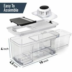 - COMPACT, DURABLE, AND EASY TO CLEAN: Compact design (10 inches by 5 inches) takes up minimal space in your kitchen. Stainless steel material and commercial grade lever are designed for years of use. Interchangeable blades can only be inserted one way preventing any unintentional misuse or damage. Dishwasher safe and can quickly be washed with soap and water.
