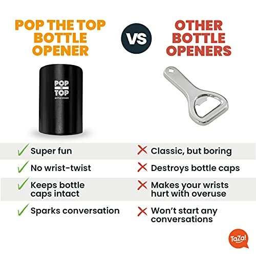 - Bottle Cap Remover to Rely On: Sleek aluminum with quality stainless steel mechanism ensures that this bottle popper bottle opener works smoothly, and you can Pop the Top bottle after bottle.