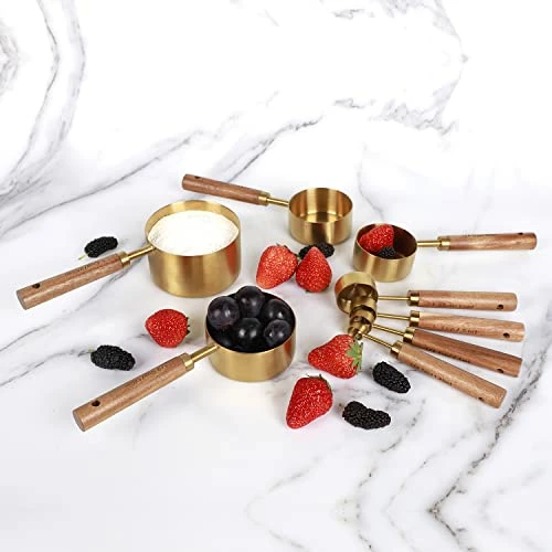 - γElegant goldenγElegant golden measuring cups and spoons Suitable for many occasions like restaurant, home kitchen, dinner party. The This golden measuring spoon is also great for photos and as a gift.