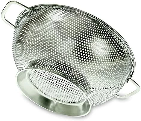 - Great Capacity – We have carefully designed our straining colander from the customer’s perspective. That is why we created a large sink strainer that will drain the water from a whole pot of food with only one use. This 3 quart mesh colander will help you drain food and wash veggies, fruits or rice faster than ever!