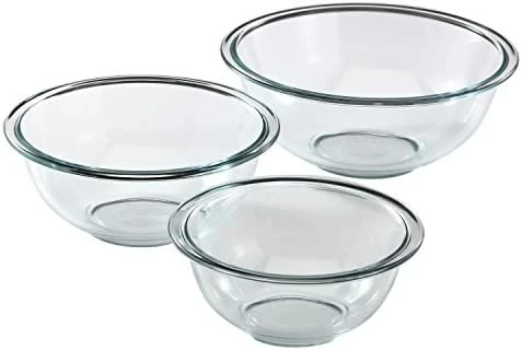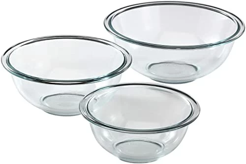 - 3-PIECE: Set includes 1-qt, 1.5-qt, and 2.5-qt round glass bowls. This is the perfect set for all manners of prepping, baking and home entertainment.