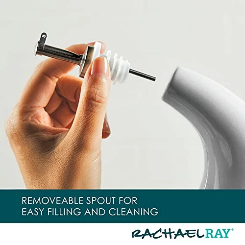 - PRECISION POUR: Rachael Ray EVOO bottle is ideal for use as a cruet and salad dressing duspenser and features unique spout designed for perfect pouring of oil and vinegar