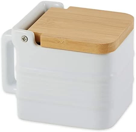 - A KITCHEN NECESSITY: Keep salt, seasoning, or sugar close by and accessible in this white stoneware salt box