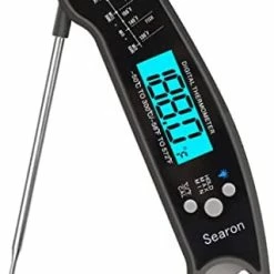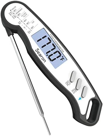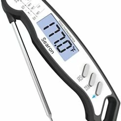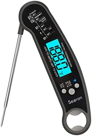 - βοΈ Easy to Use – Works right out the box! Searon food thermometer has a foldable 4. 6″ stainless steel probe and auto-on/off feature, unfold probe to turn the display on, fold probe to turn the display off. Display auto-off after no operation is done for 10 minutes.