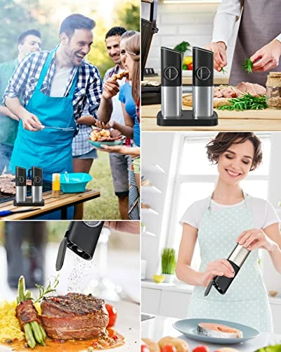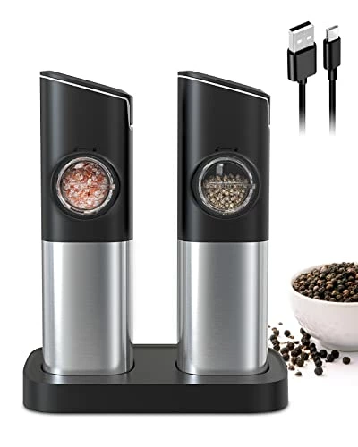 - [Wide Applicability]: The electric grinder is perfect for pepper, salt and other solid grain seasonings, rechargeable, convenient and fast, This grinder is the good helper for kitchens, restaurants, parties and outdoor picnics.
