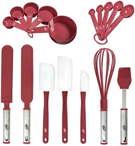 - THE ULTIMATE BAKING UTENSILS SET. : Let your inner “Chef Talents” come shining through and you will feel like a pro with this stylish & elegant Kaluns Baking tools set. Enjoy the unique variety of the best and highest quality Baking utensils set which will serve you everything you can possibly need to prepare that perfect dish! This set includes: Whisk, Basting Brush, 3 Size Spatulas, Butter Scraper, Cake Scraper, 5 Measuring cups, 5 Measuring spoons.