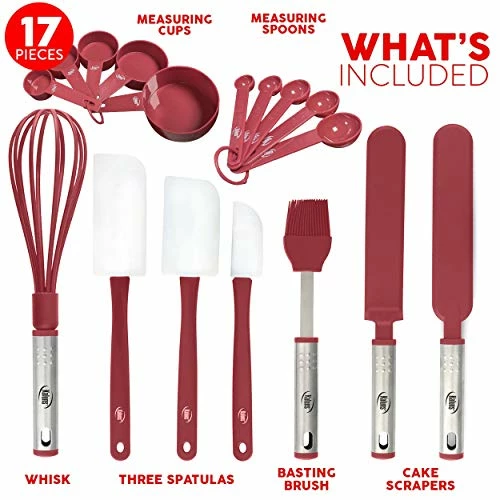 - SHOP SMART, SAVE AND GAIN: Don’t waste your time in spending a fortune with buying each utensil individually, buy yourself a full 17 piece high-quality and light-weight set for cheap and gain a rich selection of professional stainless steel Baking utensils, which will enhance your Baking experience. It is especially designed to help you with all your food preparations, such as whisking, stirring, measuring, mixing, scraping and baking!