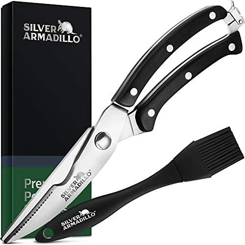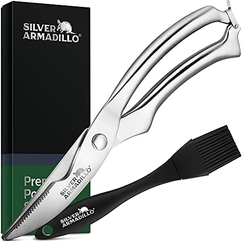 - GET A SILICONE BASTING BRUSH AS A FREE GIFT WITH YOUR PURCHASE: When you order the Poultry Scissors by Silver Armadillo weβre including a free gift! Silicone basting brush that is perfect for spreading marinade or oil on meat after youβve sheared it with the Poultry Scissors! Its silicone material makes it perfect for use with high temperatures. Weβre also including life time guarantee, so you can BUY WITH CONFIDENCE!