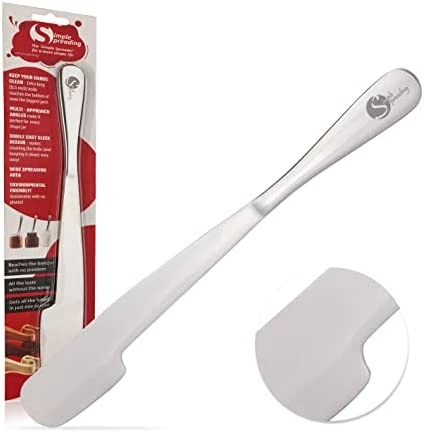 - DURABILITY: THE ULTIMATE SPREADER We have used the highest quality stainless steel to manufacture jam spreading knife. Use this peanut butter stirrer gadget confidently. This long and innovative kitchen knife reaches and scrapes the bottom of any jar