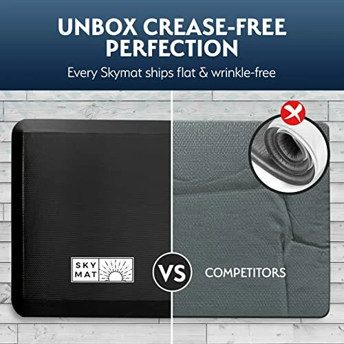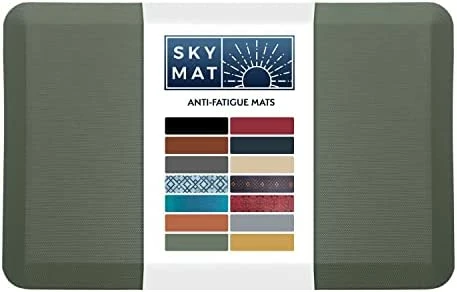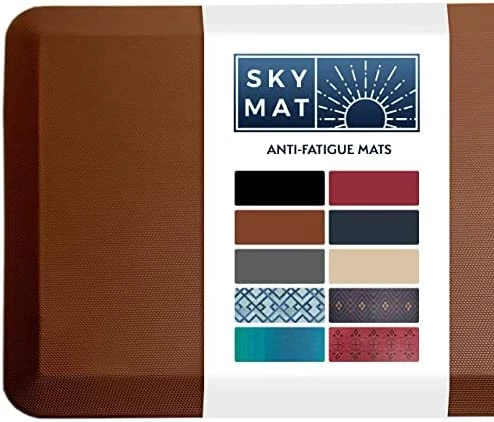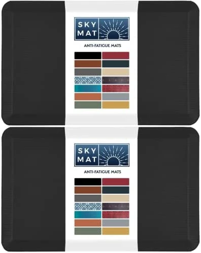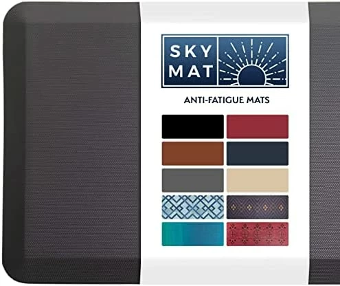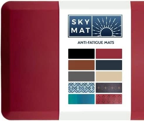 I am very pleased with this anti-fatigue. Prior to receiving the mat I had another from a different seller. Although that mat was a little thicker, it was extremely difficult to clean and because I placed both mats in front of my sink area, ease of cleaning/wiping off is key. I’ve only used the Sky Solutions anti-fatigue mat for three days but it so far it wipes clean very easily and I am comfortable when standing at my sink for food prep and hand washing dishes.