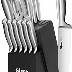 I love the design which does not involve any rivets and as a result, it is very comfortable in holding knives and cutting stuff smoothly. The different varieties of knives gave me options to carve vegetables and play with my creativity as well. They are very durable and I could see myself using this set for long term. The addition of the knife sharpener on the holder is like cherry on the cake. I do not have to worry about purchasing another one since I could just sharpen it as per my needs. This is a great value for an amazing set like this. Must recommended!