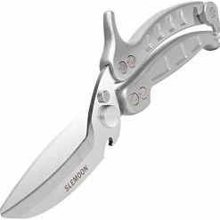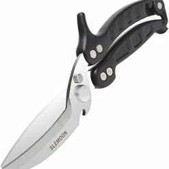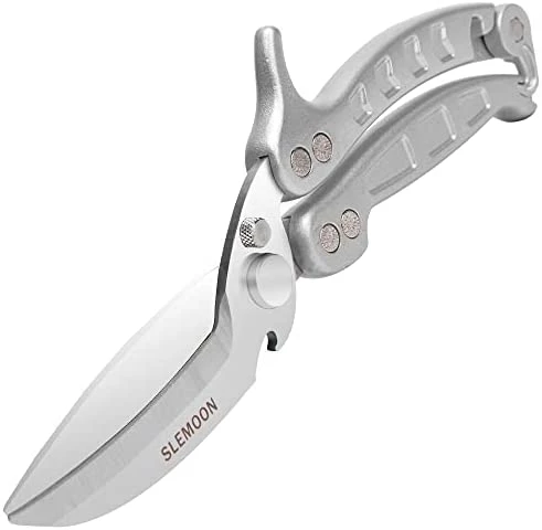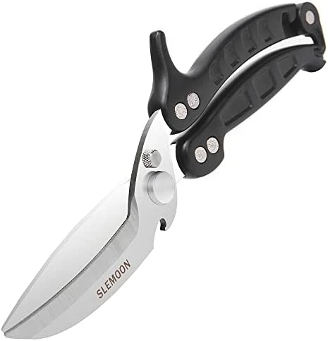 - γPREMIUM STAINLESS STEEL POULTRY SHEARSγThe kitchen poultry shears are made of quality stainless steel, which makes it sharper and thicker. The blade of professional poultry shears has extreme sharpness, and one of the blades with a serrated edge is an ideal tool for scraping fish scales. Itβs effortless for kitchen chicken shears heavy-duty to slice through chicken wing, fish, meat and vegetable, which made it a vital role in the kitchen.