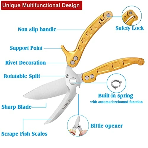 - γLOADED SPRINGS OF KITCHEN SCISSORS NO FALL APARTγThe stainless steel kitchen scissors along with built-in springs, it will relieve the pressure from your hand. The booster spring rebounds automatically, which is not easy to fall apart or break during the usage process. Just apply force in one direction with little effort. Also, the kitchen scissors heavy duty come with an open and close lock design, itβs more convenient to free adjust the professional kitchen meat scissors by yourself.
