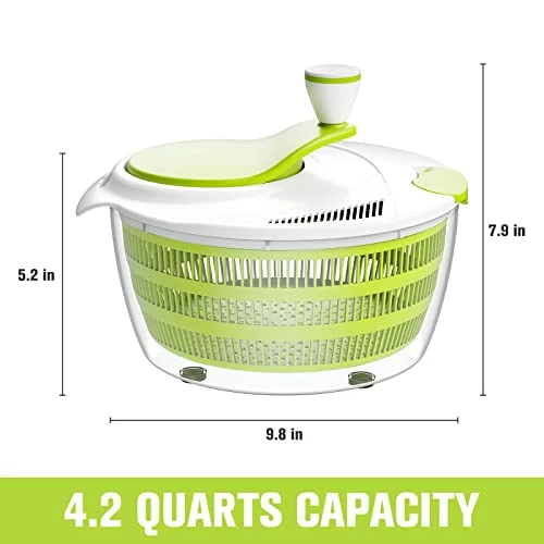Best Pirce β€οΈ Smile Mom Salad Spinner Large 4 Quarts, ABS,BPA Free Clips & Locking, Lettuce Vegetables Washer Dryer Drainer Crisper Strainer For Home Kitchen Washing & Drying Leafy Vegetables Green π
