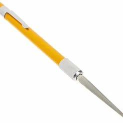 I finally wore out two of the original Smith’s pocket files like this that I bought sometime in the late 80s and early 90s I think. I suppose those were made in the US back then but they were for sure made a bit nicer than today’s offering made overseas. The working end of this tool is great actually…finer diamond grit than most and it’s reasonably durable, good fine taper on that end of it. The aluminum tube body on these new ones is just this side of junk, however, as is the pocket clip. The old ones were simple and sturdy without being overbuilt. I expect the threads on this to get worse with use and they’re already pretty shoddy. But I guess it works for the purpose and the rod hasn’t slipped yet. Definitely still worth buying – does a great job with serrations and it comes in handy for some cutting tooling like router bits and forstner drill bits where it can be hard to access with a slip stone or file, or touching up inside curves/rings where a needle file might not be as ideal as it should be. This one is appreciably nicer than any of the typical slightly coarser grit import-branded ones I’ve seen lately.