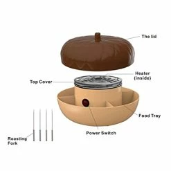 This Smores Maker, Electric Flameless S’mores Maker with Lid, Tabletop Stainless Steel Smores Kit with 4 Compartment Trays and 4 Roasting Forks, is actually bigger than I thought. It is $60, which is a little bit expensive. The top and bottom is plastic, but the heater inside is stainless steel. Once plugged in, it heats up the heater coil so we can use the roasting forks to roasted marshmallows. It doesn’t get too hot where the chocolate in the container melt, but the bottom and top covers are plastic. It is lightweight, and the two prong plug-in can be tucked underneath of the s’mores maker for storage.