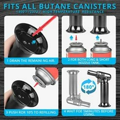 - γFit ALL Small Butane TanksγDo not know what butane gas tank to buy? Or have no idea whether the butane canister at home does not fit our torch? Donβt worry, Sondiko cooking torch fits any brand of small butane gas with whether long nozzle or short nozzle! For butane tank with long nozzle, refill the torch directly; for gas tank with short nozzle, add the red adapter included in the box to lengthen the nozzle, then refill the torch.