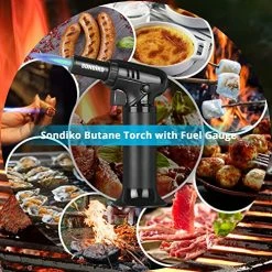 - γPremium Fuel GaugeγSondiko cooking torch is equipped with a transparent fuel gauge on the bottom, enabling you to know the remaining gas at any time and thus better manage your cooking creation. Whatβs more, the easy-to-read fuel gauge with MAX line also functions as a reminder to avoid overfilling. 10g large fuel gas capacity lasts 20-50 minutes each full refill with stable performance, easy handling your delicious feast.