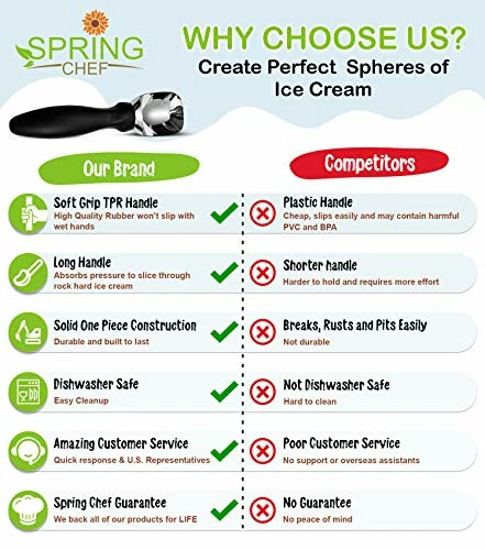- PLOWS THROUGH ICE CREAM LIKE IT’S BUTTER – Glides smoothly and easily through hard-packed frozen sweets. It will seem like ice cream flows right into the ice cream scoops and drops into your bowl or cone with little to no effort.
