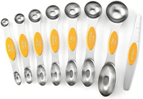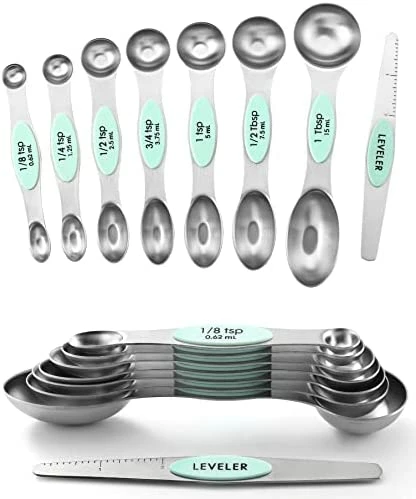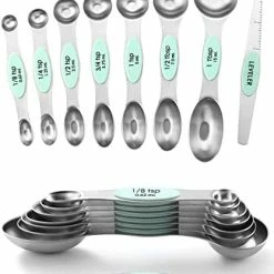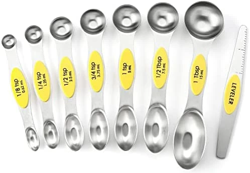 - Magnetic For Easy Use And Storage – These magnetic spoons let you use one spoon at a time and then they nest together for easy storage. Quickly grab the spoon you need without having to fumble with opening and closing a ring. They even have U.S. and metric measurement markings that are easy to read and won’t fade or rub off. You’ll wonder how you ever lived without them.