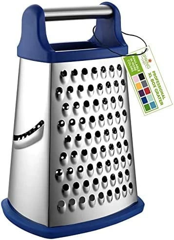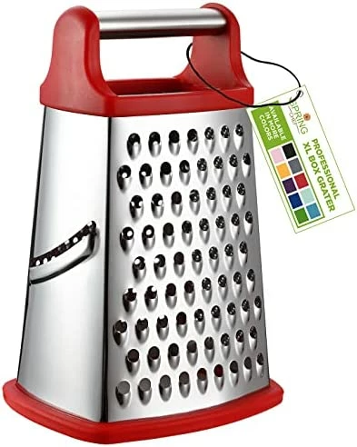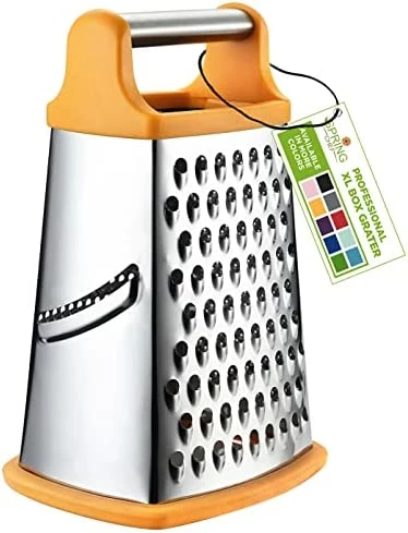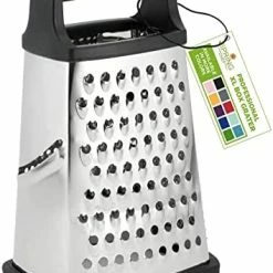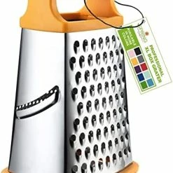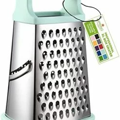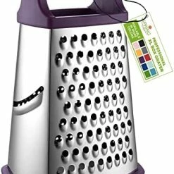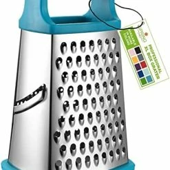 - Incredible Versatility With The 4 Sided Design: Consider getting rid of all the other graters and slicers you may own to make room for this. Coarse grating, Medium grating, Fine grating/Zester and even a Slicer – all in one convenient tool. Quickly prep an array of foods like cheese, potato, squash, zucchini, carrots, lemons and cucumbers. Multi-functional with a comfortable handle that gives you total control.