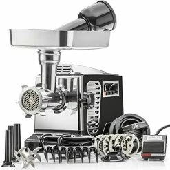 - This Turboforce II 4000 Series Grinder also Includes: 1-Polished Aluminum Grinding Head and High Capacity Meat Tray, 3 – 304 Grade Stainless Steel Cutting Blades, 5 – Sizes of Grinding Plates, 1 – Sausage Stuffing Plate, 3 – Sizes of Sausage Stuffing Tubes (1/2″, 5/8″ & 3/4″), 1 – Kubbe/Kibbe Making Attachment & 1 – Easy to Use Palm Meat Pusher/Stuffer, a pair of Meat Claws & Burger-Slider Press.