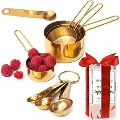 - β 100% SATISFACTION GUARANTEED – We stand behind our products and believe you will love showing off and using these modern and functional all stainless steel gold measuring cups and metal measuring spoons. If for ANY reason, you donβt, please let us know and we will make it right