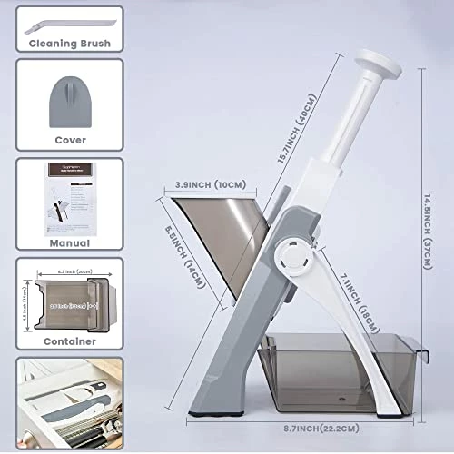 - SAFE MANDOLINE SLICER: The unique design prevents your hands from ever going near the built-in blades. Even your child can use it quickly cut vegetables into slices, dice, and julienne, this mandoline is the safest option for slicing. The entrance size is 2.9*3.3, if the food is too large, please cut it and then put it in.