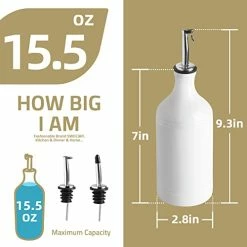 - Leak Proof & Keep Liquid Fresh – The bottle is made of durable ceramic that creates a smooth glaze. And the opaque porcelain bottle protects the oil from light and makes it last longer.