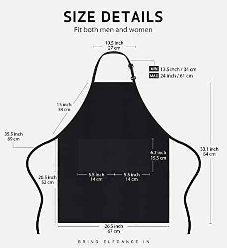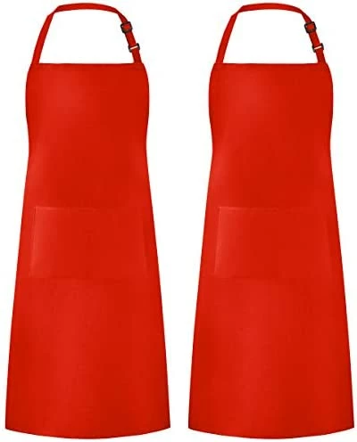 - Wide Coverage- Large bib Apron that covers from chest to knee provides great coverage and protection from kitchen grease, spills and food stains. Note: do not place apron nearby any heated cooking ware or flame.