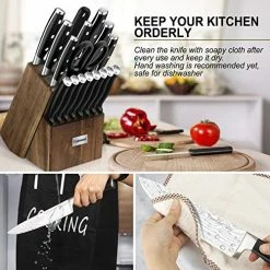 - [Easy Care & Storage] – All knives are well organized into 1 wood block that made of durable natural oak, it helps to keep keen edge on your blades, and make a handsome addition to a countertop.