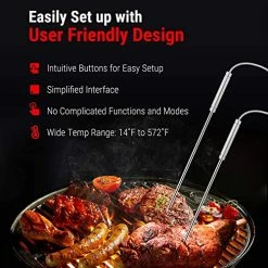 - Dual probe for food and BBQ: Meat thermometer oven safe with highly accurate stainless steel meat probe and oven/ grill/ smoker temperature probe, to allow you to monitor both food and ambient temperature simultaneously, making the smoker thermometer especially suitable for long smokes or grilling sessions
