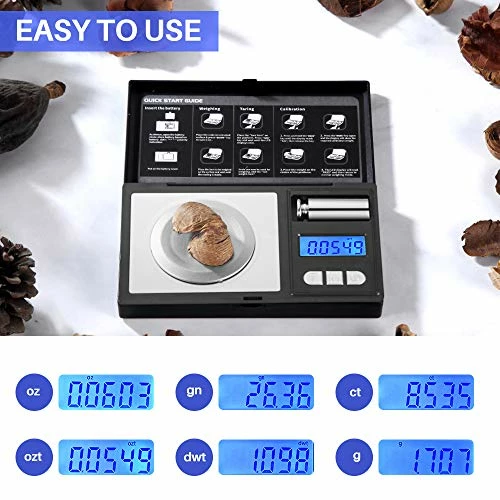 - LCD Screen & Indicator : The powder scale with a backlit LCD screen which gives you to read the numbers clearly in the dark. And the gem scale smart indicator could remind you low battery power, overload and unstable position. Auto-off function works after 180 seconds of inactivity to save power.