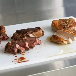 - BPA FREE & FOOD SAFE – Cutting raw slabs of beef, fruit and veggies can get messy and difficult to clean. Feel better knowing that this white cutting board is made from heavy duty HDPE plastic and is BPA-free. Safe for any food you eat and safe for putting in the dishwasher.