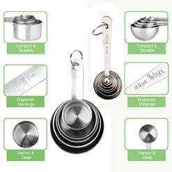 - γStainless Steel Measuring SpoonsγThe metal measuring spoons are made of premium stainless steel which have sturdy construction and brushed finished surface, measuring spoons is healthy and has no peculiar smell, so no nooks or crannies for dirt to hide, will not rust, bend, or deform, high temperature resistance After using the spoons you can easily put it in dishwasher